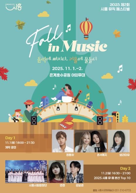 이번 대회는 ‘시흥 폴 인 뮤직(Fall in Music) 음악에 빠지다, 가을에 물들다’라는 주제로 총 21일간 전국 단위 다양한 장르의 참가팀을 모집했다. 서류 및 연주영상 심사 후 15개 팀이 오는 10월 26일 목감 산현공원에서 열리는 예선전에 진출한다. 이어 11월 2일 열리는 본선 무대에는 최종 10개 팀만이 참가 자격을 얻어 6개 팀이 최종 수상 팀으로 선정될 예정이다.