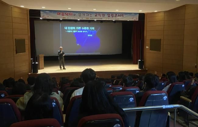 【뉴스라이트 = 조용은 기자】 여주교육지원청은 10월 23일, 명성황후생가유적지 문예관에서 '마음닥터와 함께하는 교직원 힐링콘서트'를 개최하여 관내 교직원들에게 명사 강연과 아카펠라 공연을 통해 마음 건강을 회복하는 기회를 제공했다.