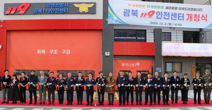 【뉴스라이트 = 이양지 기자】 광명소방서는 12월 2일 오후 2시, 신축된 ‘광북119안전센터’ 신청사(광명시 광이로 67)에서 개청식을 개최했다. 행사에는 박승원 광명시장, 광명시의장 등 주요 기관·단체 관계자를 비롯해 광명소방서 직원, 광명의용소방대원 등 약 100여 명이 참석했다.