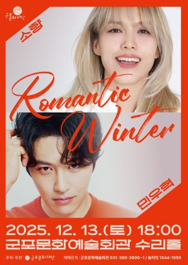 【뉴스라이트 = 이양지 기자】 군포문화재단은 오는 12월 13일 오후 6시, 군포문화예술회관 수리홀에서 연말 기획공연 “소향×민우혁 콘서트 'Romantic Winter'”를 개최한다.
