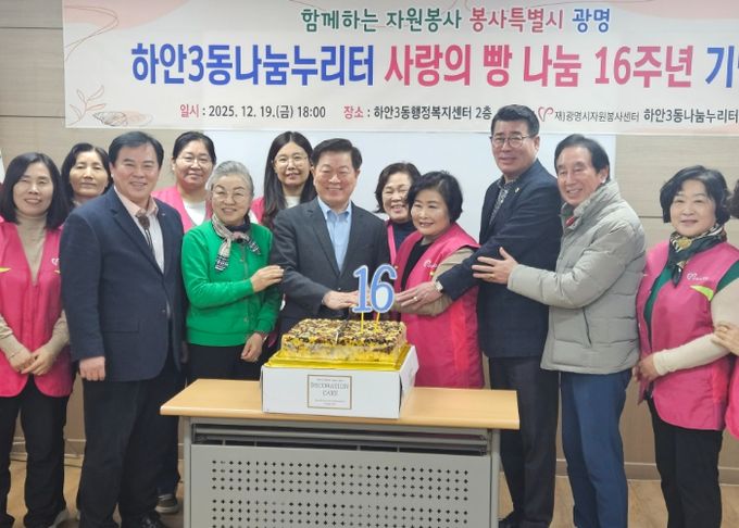 【뉴스라이트 = 이양지 기자】 광명시 하안3동 나눔누리터는 광명시자원봉사센터, 하안3동 행정복지센터와 함께 지난 19일 하안3동 행정복지센터 2층 회의실에서 ‘사랑의 빵 나눔’ 16주년 기념식을 개최했다.