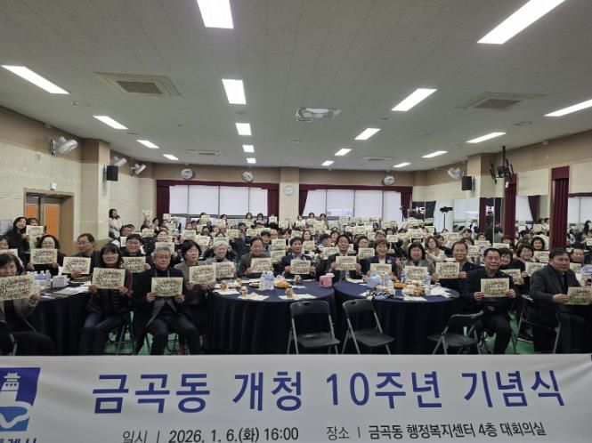 【뉴스라이트 = 조용은 기자】 2026년 개청 10주년을 맞은 권선구 금곡동은 지난 6일 지역구 의원과 주민 등 100여 명이 참석한 가운데 주민자치회 및 통장협의회와 함께 10주년 기념행사를 개최했다.