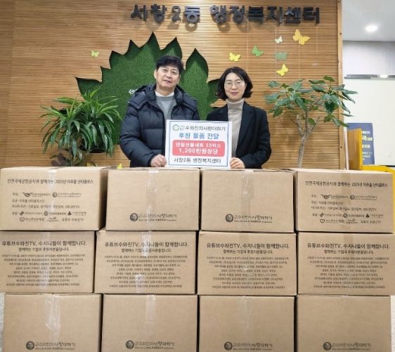 【뉴스라이트 = 이세현 기자】 인천시 남동구 서창2동 행정복지센터는 (사)수와진의 사랑더하기로부터 어려운 이웃을 위한 겨울 선물세트 50상자를 기부받았다고 19일 밝혔다.