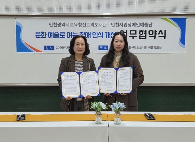 【뉴스라이트 = 이세현 기자】 인천광역시교육청신트리도서관은 6일 인천시립장애인예술단과 ‘문화예술을 통한 장애 인식 개선 및 포용적 문화 확산을 위한 업무협약’을 체결했다.