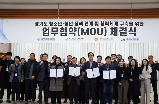 【뉴스라이트 = 조용은 기자】 수원시청소년청년재단은 2월 12일, 경기도미래세대재단, 성남시청소년청년재단, 시흥시청소년청년재단과 함께 ‘경기도 청년 정책 연계 및 협력체계 구축을 위한 업무협약’을 체결했다.