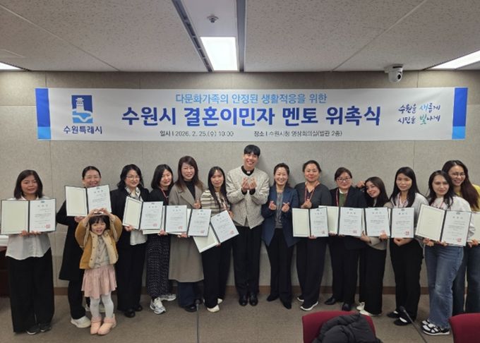 【뉴스라이트 = 조용은 기자】 수원특례시가 25일 시청 영상회의실에서 ‘2026년 결혼이민자 멘토 위촉식’을 열고 선배 이민자 멘토 15명을 위촉했다.