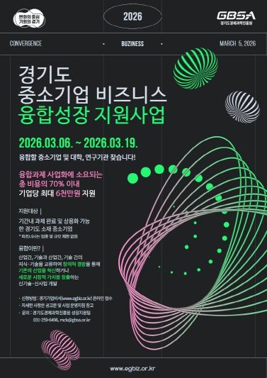 【뉴스라이트 = 조용은 기자】 경기도와 (재)경기도경제과학진흥원이 도내 중소기업의 혁신 성장과 새로운 비즈니스 모델 발굴을 돕는 ‘2026년 중소기업 비즈니스 융합성장 지원사업’의 참여기업을 모집한다.