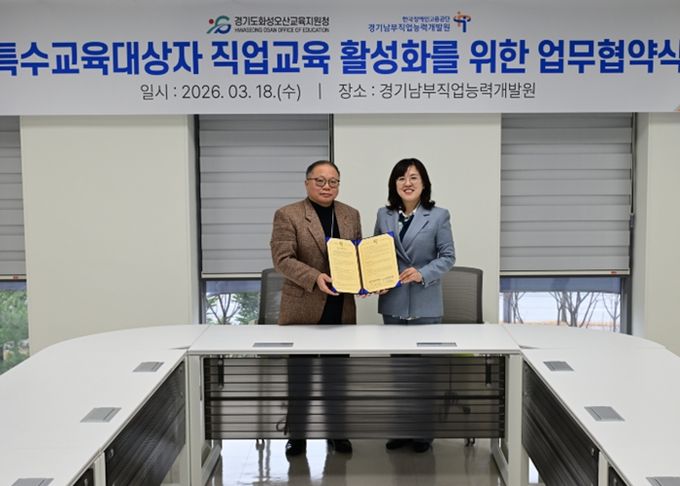【뉴스라이트 = 조용은 기자】 경기도화성오산교육지원청이 특수교육대상 학생들의 진로직업교육 강화를 위해 한국장애인고용공단 경기남부직업능력개발원과 협력에 나선다.
