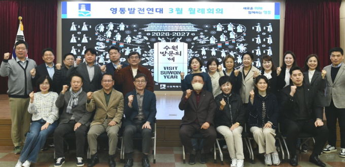 이날 회의에서는 △'2026 수원시 일자리박람회' 개최 △'2026 만석거 새빛축제' 개최 등 시‧구정 홍보사항을 공유하고, 2026년 1분기 성과 및 2분기 영통구 발전을 위한 전반적인 운영계획에 대해 논의했다.