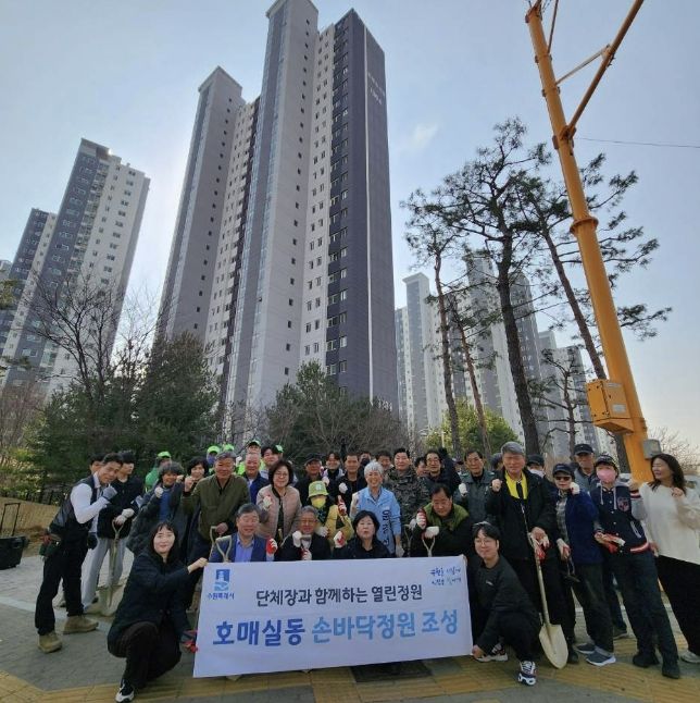 【뉴스라이트 = 조용은 기자】 지난 24일, 수원시 권선구 호매실동은 쾌적한 마을 환경 조성과 도심 속 정원 문화 확산을 위해 아파트 단지 인근 유휴지에 ‘손바닥 정원’을 조성했다.