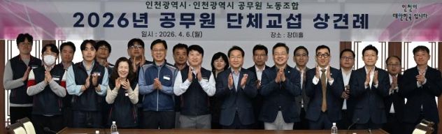 【뉴스라이트 = 이세현 기자】 인천광역시는 4월 6일 시청 장미홀에서 인천시공무원노동조합, 전국공무원노동조합 인천지역본부 인천시지부와 ‘2026년도 단체교섭 체결을 위한 상견례’를 개최했다고 밝혔다.
