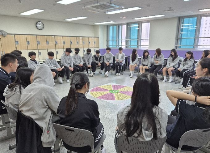 이번 프로그램에는 1학년 4개 학급, 2학년 6개 학급 등 총 10개 학급이 참여했으며, 광주시청소년상담복지센터 전문 상담사가 각 학급을 방문해 학급 단위 집단상담을 진행했다. 학생들은 자신과 타인을 이해하고 표현하는 그림 그리기 활동과 학급 친구들의 성향과 관심사를 알아가는 ‘바람이 분다’ 게임 등 다양한 체험 활동에 참여했다.