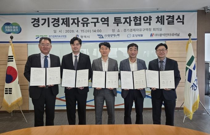 【뉴스라이트 = 조용은 기자】 경기경제자유구역청은 15일 경기경제청 8층 회의실에서 평택시 및 자동차부품, 반도체, 화학 제조기업 5개사(㈜왕성이노텍, 조양메탈㈜, ㈜광석인터내셔날/그 외 2개 기업 서면 협약)와 평택 포승(BIX)지구 산업시설용지 투자협약을 체결했다.