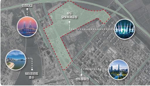송도 달빛축제공원 일원은 인천대교, 워터프런트 호수, 센트럴파크 경관이 있고, 인천국제공항과 가까우며, 인천지하철 1호선이 인접하는 등 훌륭한 입지여건을 갖추고 있다고 판단된다.