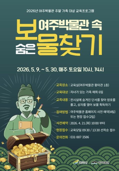 【뉴스라이트 = 김정민 기자】 여주시 여주박물관은 가정의 달 5월을 맞아 가족이 함께 지역 문화유산의 가치를 즐겁게 배우고 체험할 수 있는 ‘여주박물관 속 숨은 보물찾기’를 운영한다.