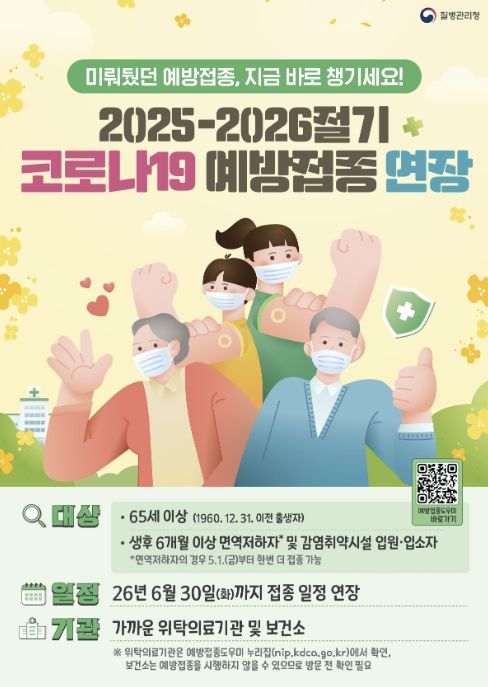 접종 대상은 ‘2025-2026절기(LP.8.1) 코로나19 백신’을 아직 접종하지 않은 고위험군으로 ▲65세 이상 어르신 ▲면역저하자 ▲감염취약시설 입원·입소자가 해당된다.