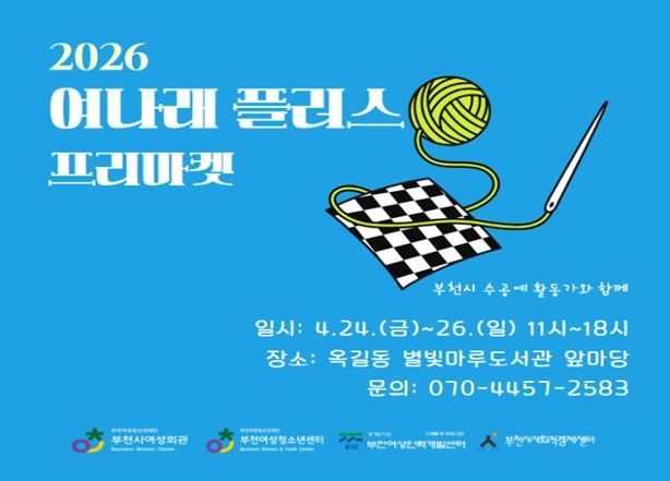 【뉴스라이트 = 이세현 기자】 부천여성청소년재단이 운영하는 부천시여성회관과 부천여성청소년센터는 오는 4월 24일부터 26일까지 3일간, 옥길동 별빛마루도서관 앞마당에서 지역 여성 수공예 작가들의 작품을 판매하는‘여나래 플러스 프리마켓’을 개최한다.