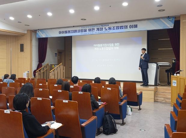【뉴스라이트 = 조용은 기자】 경기도아이돌봄광역지원센터는 20일 경기도인재개발원 다산홀에서 도내 31개 시군 아이돌봄서비스 제공기관 종사자와 관련 공무원을 대상으로 ‘2026년 노동조합법 이해 교육’을 개최했다.