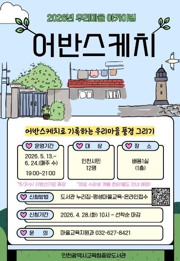 【뉴스라이트 = 이세현 기자】 인천광역시교육청중앙도서관은 2026년도 마을교육 아카이빙 사업의 일환으로, 5월 13일부터 ‘우리 마을 아카이빙, 어반스케치’ 프로그램을 운영한다.