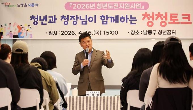 【뉴스라이트 = 이세현 기자】 인천시 남동구는 최근 남동구 청년꿈터에서 박종효 구청장과 청년도전지원사업 참여자들이 함께하는 ‘청청토크’를 개최했다고 21일 밝혔다.