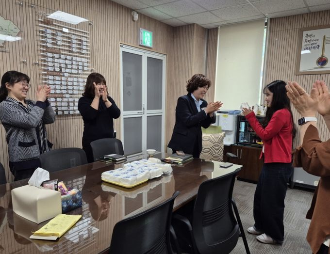 면장실에서 열린 이날 행사에는 전 직원이 참석하여 새로운 출발을 응원했다. 선배 공무원들은 정성껏 준비한 떡을 나누며 정규임용을 축하하는 한편, 청렴한 공직자의 자세와 책임감에 대해 깊이 있는 대화를 나누며 조직 내 청렴 의식을 고취했다.