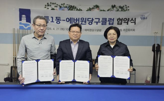 【뉴스라이트 = 조용은 기자】 수원시 영통구 영통1동 행정복지센터와 영통1동 주민자치회는 지난 21일, 주민자치센터 프로그램의 다양성과 전문성을 강화하기 위해 관내 민간체육시설인 에버원당구클럽과 업무협약을 체결했다.