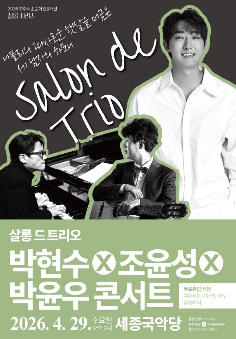【뉴스라이트 = 김정민 기자】 여주세종문화관광재단이 오는 29일, 문화가 있는 날을 맞아 2026년 특별기획 살롱 시리즈의 세 번째 무대 '살롱 드 트리오 박현수X조윤성X박윤우 콘서트'를 세종국악당에서 개최한다.