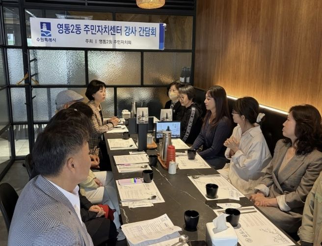 【뉴스라이트 = 조용은 기자】 수원시 영통구 영통2동은 지난 22일 영통2동 주민자치회가 주민자치센터 프로그램 운영과 관련한 다양한 의견을 수렴하고, 보다 내실 있는 운영과 활성화 방안을 모색하기 위해 주민자치센터 프로그램 강사진과의 간담회를 개최했다고 밝혔다.