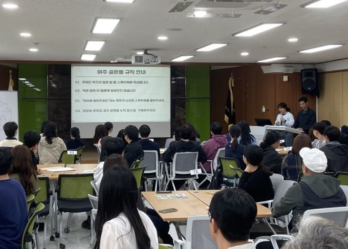 ▲ Talk ON(화합 시간): 전 직원이 모여 진행하는 단체 화합 워크숍으로, 여주 교육 퀴즈 등 다양한 활동을 통해 조직에 대한 이해도를 높이며 ‘생동하는 행복 여주교육’실현을 위한 화합의 에너지를 결집했다.