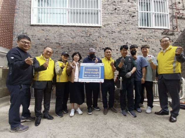【뉴스라이트 = 조용은 기자】 지난 23일 수원시 권선구 호매실동 지역사회보장협의체는 업무협약을 맺은 수원남부로타리 클럽과 주거환경개선 특화사업의 일환으로, 반지하 빌라에 거주하는 취약계층 어르신 댁에 에어컨을 설치했다.