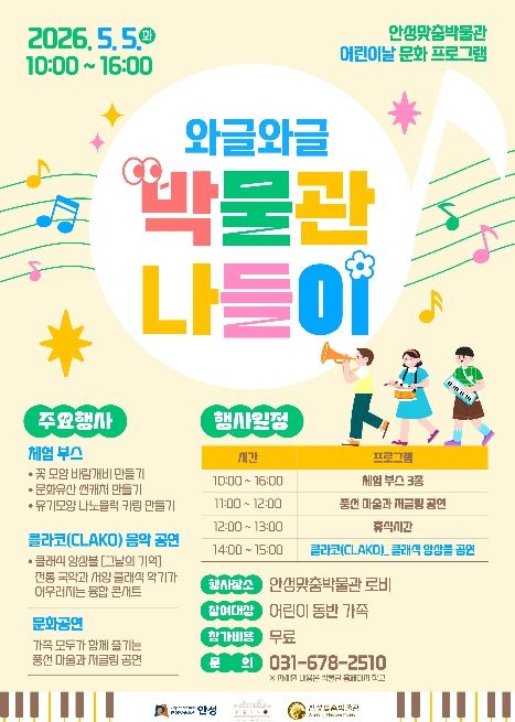 【뉴스라이트 = 박현서 기자】 안성맞춤박물관은 오는 5월 5일 어린이날을 맞아, 온 가족이 함께 즐길 수 있는 문화 프로그램 ‘와글와글 박물관 나들이’를 개최한다고 밝혔다.