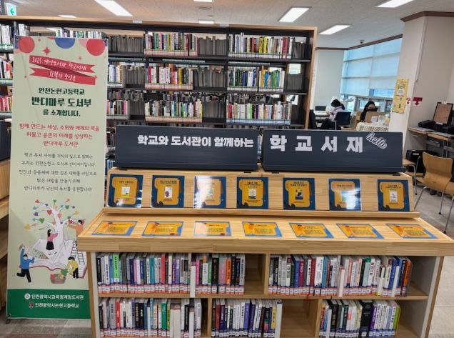 ‘학교 서재’는 계양도서관 종합자료실 내 특별 전시 공간으로, 매월 교내 학생·교직원·학부모 등 학교 공동체를 소개하고, 각 단체의 추천 도서를 12월까지 소개하는 참여형 서가이다.
