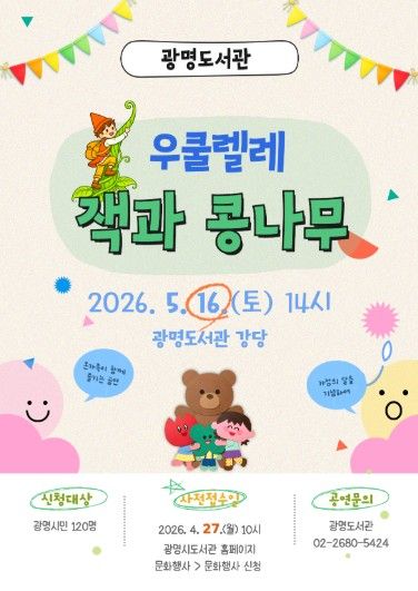 【뉴스라이트 = 이양지 기자】 광명시 광명도서관이 오는 5월 16일 오후 2시 온 가족이 함께 즐길 수 있는 창작뮤지컬 '우쿨렐레, 잭과 콩나무'를 연다.