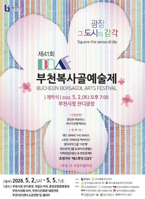 【뉴스라이트 = 이세현 기자】 부천시는 ‘제41회 부천복사골예술제’를 5월 2일부터 5일까지 4일간 부천시청 잔디광장과 중앙공원, 부천아트센터 일원에서 연다.