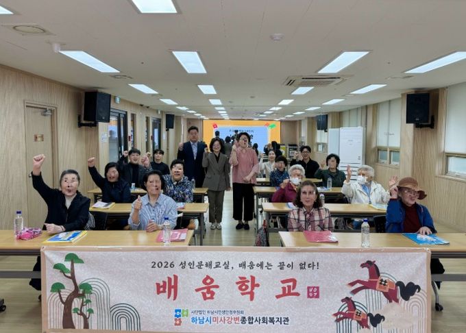 【뉴스라이트 = 김정민 기자】 하남시미사강변종합사회복지관은 지난 20일 2026년 하남시 성인문해교육 지원사업 제4회 배움학교 개강식을 진행하고, 배움의 기회를 놓친 성인 학습자를 위한 문해교육의 힘찬 출발을 알렸다고 밝혔다.