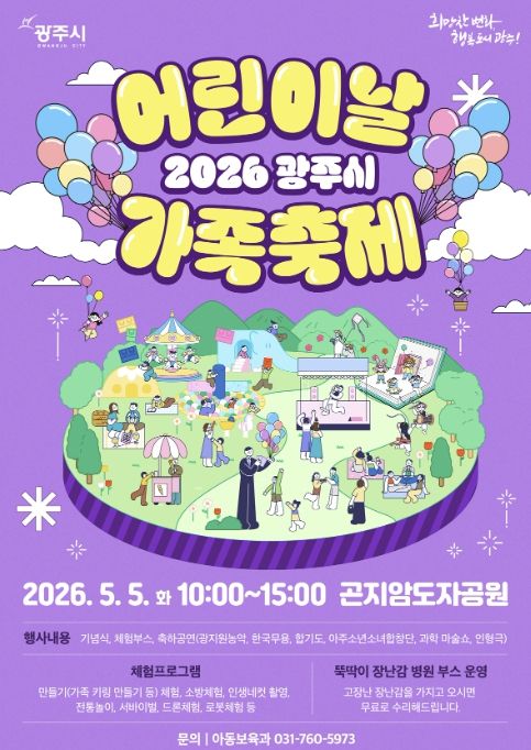 【뉴스라이트 = 김정민 기자】 광주시는 제104회 어린이날을 맞아 오는 5월 5일 오전 10시 곤지암도자공원에서 ‘어린이날 가족축제’를 개최한다.