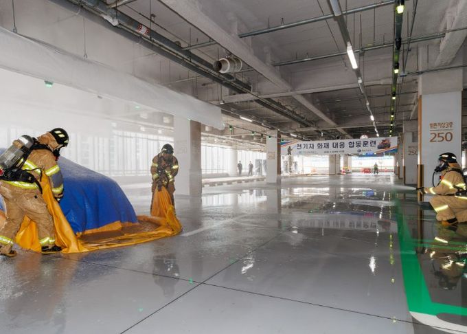 특히, 전기차 배터리 발화 시 발생하는 열폭주 현상을 효과적으로 진압하기 위해 고안된 전기차 전용 화재진압 장비 4종(질식소화포, 하부주수관창, 열화상카메라, 이동식 수조)을 총동원하여 화재의 조기 진압 및 빈틈없는 초동대응을 중점적으로 훈련했다.