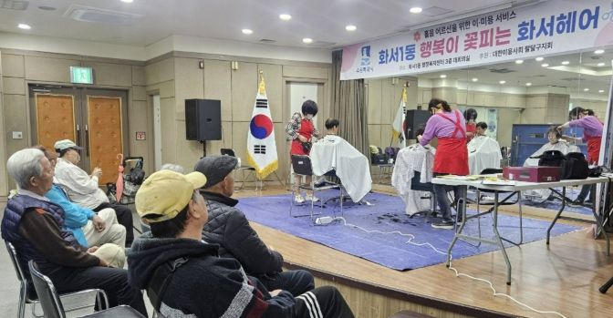 이번 사업은 경제적 어려움으로 미용실 이용이 어려운 어르신들을 위해 마련된 맞춤형 복지 사업으로, 화서1동 행정복지센터에서 대한미용사회 소속 미용사들의 재능기부를 통해 어르신 10여 명에게 무료 이미용 서비스를 제공했다.