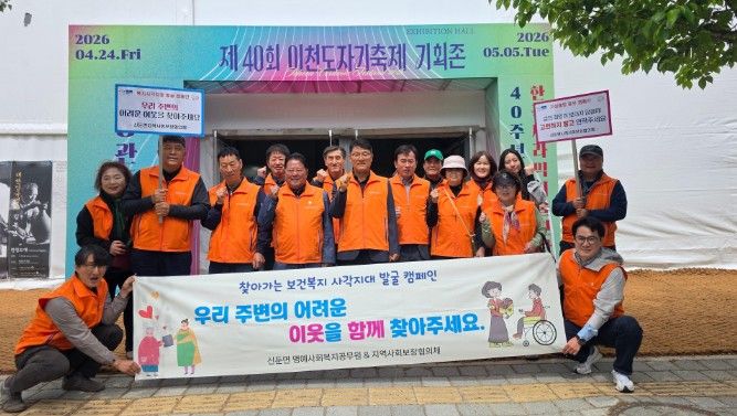 【뉴스라이트 = 김정민 기자】 신둔면지역사회보장협의체는 4월 28일 제40회 이천 도자기 축제장에서 복지 사각지대 발굴을 위한 홍보 캠페인을 실시했다. 많은 인파가 찾은 축제 현장에서 이웃을 한 번 더 돌아보자는 메시지를 전하는 자리였다.