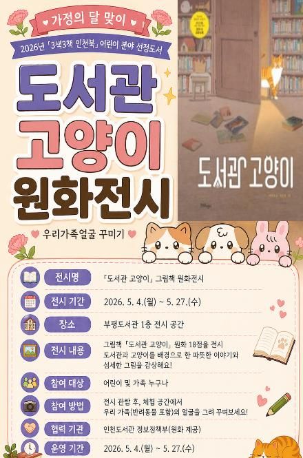 【뉴스라이트 = 이세현 기자】 인천광역시교육청부평도서관은 5월 4일부터 27일까지 가족이 함께 즐길 수 있는 '도서관 고양이' 그림책 원화 전시를 운영한다.