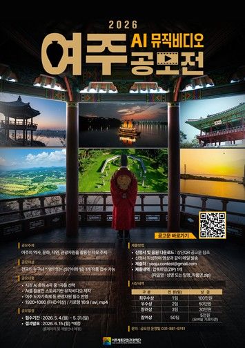 【뉴스라이트 = 김정민 기자】 여주세종문화관광재단은 여주시 관광 콘텐츠를 활용한 시민 참여형 영상 제작 프로젝트인 '2026 여주 AI 뮤직비디오 공모전'을 개최한다고 밝혔다.