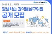 【뉴스라이트 = 이양지 기자】 광명시가 시민 주도의 생활권 중심 평생학습 정책을 강화하기 위해 ‘제4기 평생학습 권역별실무위원회’ 신규 위원 100명을 공개 모집한다. 평생학습 권역별실무위원회는 마을 단위의 학습 의제를 발굴하고 현장 맞춤형 프로그램을 기획·운영하는 민관 협력 기구다. 위원회는 ▲으뜸터(광명1~3동) ▲다울마을(광명4~7동) ▲철산지기(철산1~4동) ▲하안처럼(하안1~4동) ▲예터지기(소하·일직·학온동) 등 5개 권역으로 구성된다. 지원 자격은 광명시에 주민등록이 되어 있는 만 19세 이상 시민이라면 누구나 가능하며, 해당 권역 소재 사업장이나 기관·단체 근무자도 신청할 수 있다. 선발된 위원은 4월 1일부터 2년간 ▲마을 평생학습 의제 발굴 및 사업 제안 ▲마을배움터 프로그램 기획 및 운영 ▲평생학습축제 기획·참여 등 지역 학습 생태계 조성을 위한 핵심 역할을 수행하게 된다. 모집 기간은 오는 2월 19일부터 2월 27일까지다. 접수는 이메일 또는 광명시 평생학습원 방문을 통해 가능하다. 시는 3월 중 서류심사와 면접을 거쳐 최종 위원을 선발하고, 3월 말