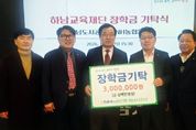 【뉴스라이트 = 김정민 기자】 NH농협은행 하남시지부는 하남시 지역인재 양성을 위해 하남교육재단에 장학금 3백만원을 기탁했다. NH농협은행 하남시지부는 하남시 인재 육성을 위해 12년동안 꾸준히 장학금을 지원하고 있으며, 이번 기탁금은 하남시 학생들의 학업지원에 활용할 예정이다. 이석표 지부장은“지역 학생들의 성장과 미래를 응원하는 마음으로 장학금을 전달했다”며 “앞으로도 지역인재 양성을 위한 다양한 지원을 이어가겠다”고 말했다. 이현재 시장(하남교육재단 이사장)은 “NH농협은행 하남시지부의 꾸준한 관심과 후원에 감사드린다”며 “기탁금이 학생들의 꿈을 키우는 데 도움이 되도록 소중히 사용하겠다”고 밝혔다. 하남교육재단은 관내 초·중·고등학생들을 대상으로 장학사업을 비롯해 캠퍼스 투어, 기업체험, 진로·진학 프로그램, 학부모 교육 등 다양한 교육 지원 사업을 운영하고 있으며, 매년 약 3만여명의 학생들이 교육서비스를 제공받고 있다.