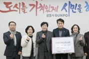 【뉴스라이트 = 이양지 기자】 군포시는 지난 9일, 안양·군포·의왕·과천 지역에서 활동하는 건축사 모임인 안양지역건축사회로 부터 현금 100만원을 기탁받았다. 안양지역건축사회는 180여명의 회원이 있으며 기금을 마련하여 연말이면 군포시에 성금을 기탁하고 있으며 “취약계층이 길고 추운 겨울을 안전하고 따듯하게 보내는데 도움이 됐으면 좋겠다”고 말했다. 하은호 군포시장은 “매년 겨울나기에 어려움이 있는 이웃을 위하여 사랑과 나눔을 실천하는 안양지역건축사회에 진심으로 감사드리며, 취약계층에게 잘 전달하겠다”고 말했다 기탁받은 후원금은 경기사회복지공동모금회를 통해 취약계층에 전달할 예정이다.