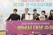 【뉴스라이트 = 김정민 기자】 성남시는 ‘제3회 한국 이에스지(ESG) 대상’ 시상식에서 지방자치단체 이에스지(ESG) 부문 대상을 받았다고 11일 밝혔다. 한국 이에스지(ESG) 대상은 사단법인 한국ESG학회가 환경(Environmental), 사회(Social), 투명경영(Governance) 분야에서 탁월한 성과를 거둔 지자체 등 공공기관과 기업, 학교, 개인 등에게 주는 상이다. 성남시는 앞선 9월 ‘이에스지(ESG) 특별시 성남’ 비전을 선포한 이후 ‘환경과 사회’, ‘사회와 투명경영’ 등 분야 간 연계 효율을 높이는 융합형 이에스지(ESG) 접근법을 제시해 높은 평가를 받았다. 해당 사업으로 △기후테크 중소기업 육성(환경) △모든 시민 무료 독감 예방접종 지원(사회) △이에스지(ESG) 시민대학 프로그램 운영(투명경영) △맨발 황톳길 11곳 운영(환경+사회) △이에스지(ESG) 환경 분야 상생 협업 추진(환경+투명경영) △나눔 명예의 전당 운영(사회+투명경영) 등이 꼽힌다. 시 관계자는 “이번 수상은 성남시만의 이에스지(ESG) 특화사업을 추진하기 위해 모든 공직자가 함께 노력해 온 결과