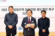 【뉴스라이트 = 김정민 기자】 이현재 하남시장은 17일 “10년 공공임대아파트에 거주하는 무주택 서민들의 주거 안정을 위해 공공임대아파트의 분양전환가 산정기준을 5년 공공임대아파트와 동일한 수준으로 변화될 수 있도록 국토교통부에 제도 개선을 요청했다”고 밝혔다. 이현재 시장은 이날 시청 상황실에서 진행된 기자회견을 통해 “10년 공공임대아파트의 분양전환가 산정기준이 5년 공공임대아파트 보다 매우 불리하게 되어있어 무주택 서민들의 내 집 마련 꿈을 산산이 조각내고 있다”며 이같이 말했다. 문제의 핵심은 10년 임대와 5년 임대주택 간의 ‘분양전환가격 산정 방식’에 있다. 현재 10년 공공임대주택은 분양전환가격이 ‘현재 시세’인 감정평가금액을 넘지 못하도록만 되어 있다. 즉, 최근 몇 년간 폭등한 부동산 시세가 사실상 그대로 분양전환가격이 되는 구조다. 반면, 5년 공공임대주택은 ‘최초의 건설원가’와 ‘현재 시세(감정평가금액)’를 더한 뒤 2로 나눈(산술평균한) 금액으로 분양전환가격이 책정된다. 쉽게 말해, 5년 임대 입주자는 최초의 저렴했던 ‘원가’ 혜택을 절반이라도 받지만, 10년 임대 입주자는 그 혜택 없이