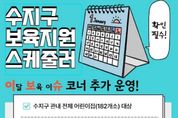 【뉴스라이트 = 박현서 기자】 용인특례시 수지구는 보육 정책 등을 알기 쉽게 정리한 ‘보육지원 스케줄러’에 이달 보육 이슈 항목을 신설했다고 15일 밝혔다. 구는 사업별 신청·정산 시기가 달라 신청 오류, 누락 등의 민원이 빈번함에 따라, 이를 해결하기 위해 2025년부터 보육지원 스케줄러를 운영하고 있다. 보육지원 스케줄러는 어린이집과 보육 교사 등을 대상으로 각종 지원 사업의 일정 등을 사전에 공유해 대상자들이 빠짐없이 신청할 수 있도록 돕고자 마련됐다. 구는 매달 신청·정산 지원사업, 제출일, 제출 방법, 주요 변경사항 등을 표로 만들어 보육인 오픈 채팅방과 보육통합정보시스템에 선보이고 있다. 여기에 이달 보육 이슈 항목을 추가해 지역 내 어린이집 182곳을 대상으로 매월 각종 지원사업을 사전에 알리고 변경되는 정책과 최근 이슈, 주요 정보 등을 상세히 제공하기로 했다. 구 관계자는 “보육 교사들의 업무 부담을 덜고, 효율적인 보육 현장을 지원하기 위해 이달 보육 이슈 코너를 마련했으니 유용하게 이용해 주시기를 바란다”고 했다.