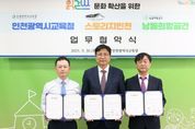 【뉴스라이트 = 이세현 기자】 인천광역시교육청은 9월 30일 ㈜월미하이랜드(대표 이덕성) 스토리지인천, 남동희망공간(대표 유병희)과 함께 ‘읽걷쓰’ 문화 확산을 위한 업무협약을 체결했다. 이번 협약으로 참여 기관들은 ▲‘읽걷쓰’ 연계 프로그램 운영 ▲지역사회 공헌 활동 협력으로 ‘읽걷쓰’ 활성화와 시민문화 정착을 위해 함께 나선다. 특히 관련 정보와 자원을 공유해 일상이 배움이 되는 교육환경을 조성하고 지역사회와 함께 성장하는 기반을 마련할 계획이다. 도성훈 교육감은 “인천교육은 ‘읽걷쓰’ 기반의 올바로․결대로․세계로 교육으로 학생성공시대를 활기차게 열어가고 있다”며 “이번 업무협약을 통해 기관 간의 상호 신뢰와 협력을 바탕으로 ‘읽걷쓰’ 실천 문화가 더욱 확산되기를 바란다”고 말했다.