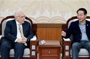 【뉴스라이트 = 이세현 기자】 유정복 인천시장은 12월 3일 오후 인천시청 접견실에서 세계 최고 수준의 의과·바이오 연구 중심 대학인 존스홉킨스대의 조나단 슈넥(Jonathan schneck) 의과대학 교수(왼쪽) 일행을 접견했다. 이번 접견은 12월 4일 인천에서 ‘존스홉킨스대 글로벌 바이오 혁신 서밋’을 개최하게 됨에 따라, 이번 서밋을 주관한 존스홉킨스대학의 교수진과 다양한 협력 방안을 논의하기 위해 마련됐다. 유정복 인천광역시장(가운데), 조나단 슈넥 교수(왼쪽에서 세 번째), 김덕호 존스홉킨스 글로벌 생명공학 혁신 센터장(왼쪽에서 두 번째)는 ▲향후 인천을 거점으로 한 한-미 공동연구 및 바이오 혁신기술 산업화 방안 ▲존스홉킨스대 연구센터(R·D센터) 유치 등에 대한 논의를 이어갈 방침이다. 조나단 슈넥 존스홉킨스대 교수는 “송도를 중심으로 한·미 바이오 협력이 새로운 글로벌 혁신 모델로 정착하길 기대한다”라고 말했다. 유정복 인천시장은 “인천시는 세계적 연구기관과 글로벌 기업, 산업 협회와의 협력을 통해 연구개발부터 산업화, 글로벌 진출까지 연결되는 바이오 산업 생태계 조성을 적극 지원하