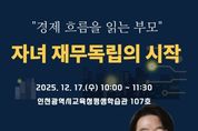 【뉴스라이트 = 이세현 기자】 인천광역시교육청평생학습관은 17일 고3 학부모를 대상으로 부모쉼표 특강 ‘경제 흐름을 읽는 부모: 자녀 재무독립의 시작’을 운영한다. 이번 특강은 자녀의 사회진입을 앞둔 학부모가 변화하는 경제 환경을 이해하고, 준비된 시각에서 자녀의 재무독립을 지원하도록 돕는 프로그램이다. 강의는 전 증권사 애널리스트이자 경제·투자 리서치사 ‘광수네 복덕방’의 이광수 대표가 맡아 부모 역할, 경제 변화의 기본 이해, 가정에서 실천 가능한 경제 소통 방법 등을 안내한다. 참여 대상은 인천 관내 고3 및 관심 있는 학부모 100명이며, 신청은 12월 3일 오전 10시부터 평생학습관 누리집에서 선착순으로 받는다. 자세한 사항은 평생학습관 누리집 공지사항 또는 평생교육부로 문의하면 된다.